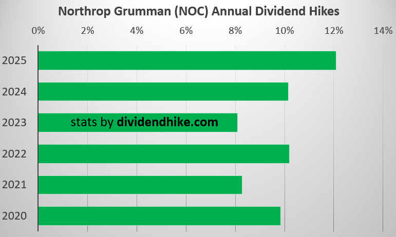 The current dividend yield is 1.9% (gross). Northrop is estimated to pay out about $1.2 billion in dividends annually. Last year, the dividend was increased by 10.2%. Just this week we did a change in our dividend hike portfolio involving Northrop.